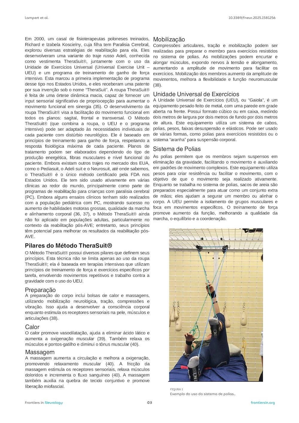 A terapia intensiva utilizando o Método TheraSuit® é uma técnica inovadora utilizada em crianças e adultos com distúrbios neurológicos. O tratamento utiliza equipamentos e técnicas especializadas para ajudar as crianças a ganharem a força e a resistência necessárias para o movimento. Os benefícios do Método TheraSuit incluem o recondicionamento do sistema nervoso central, normalização do tônus muscular, correção do padrão de marcha, melhoria do equilíbrio, aumento da força, resistência aumento assim a função e independência.