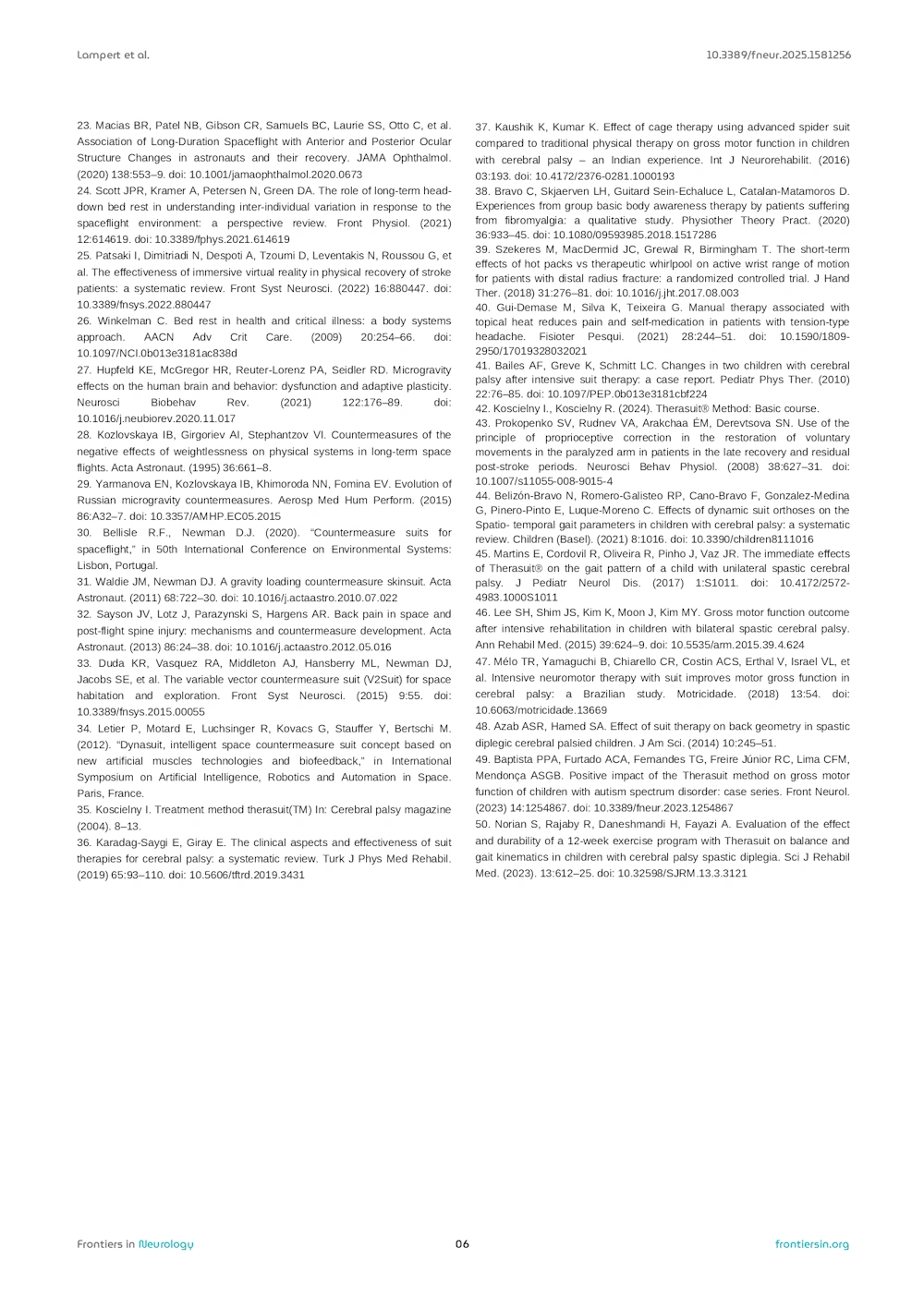 O TheraSuit, que possui aprovação da FDA, registrado pelo Anvisa. O Therasuit é composto por shorts, colete, joelheiras, acessórios para os sapatos e uma touca. Ele foi inspirado por tecnologias espaciais, o traje original foi utilizado pelo Programa Espacial Russo para combater os efeitos nocivos da ausência de gravidade e foi modificado pelos fisioterapeutas Izabela e Richard Koscielny para ser utilizado por pessoas com alterações somato sensórios.